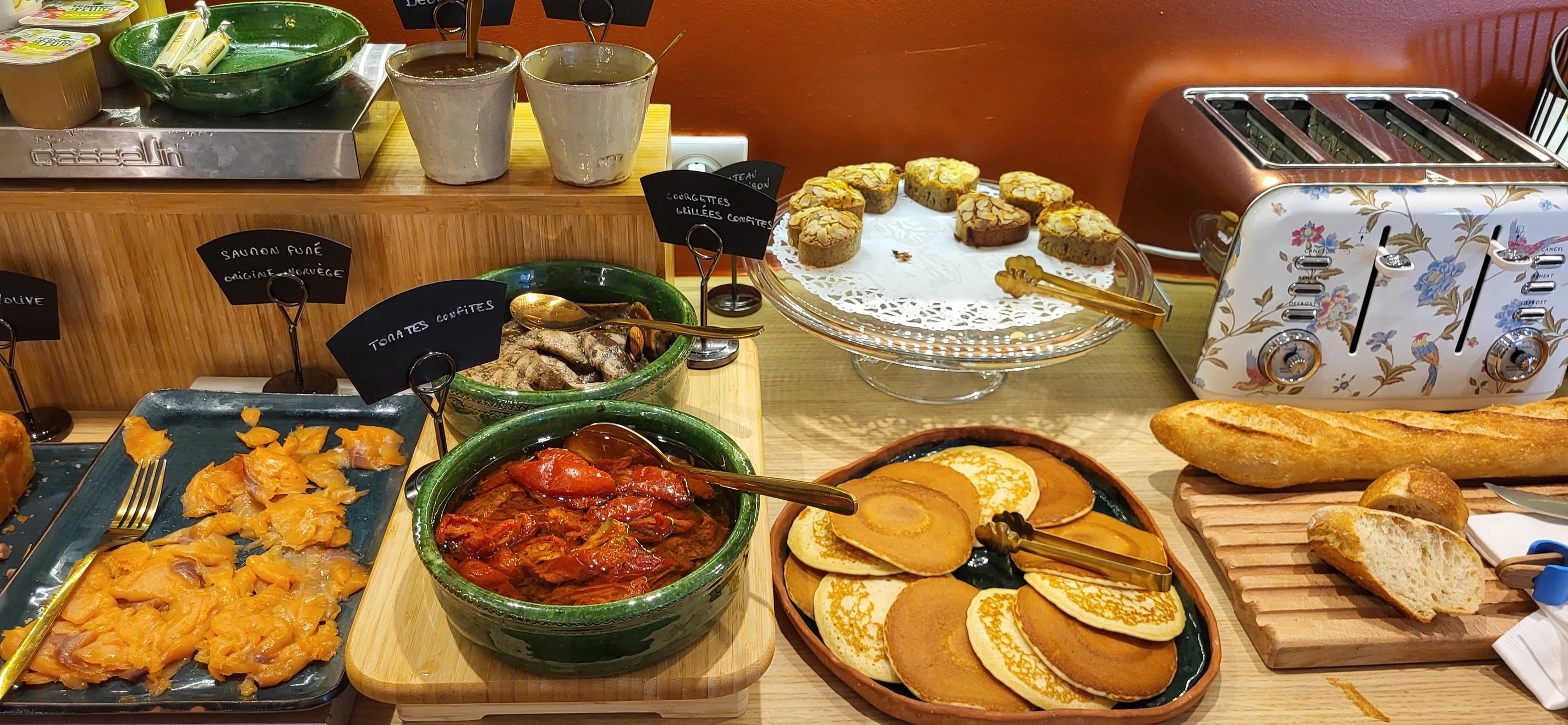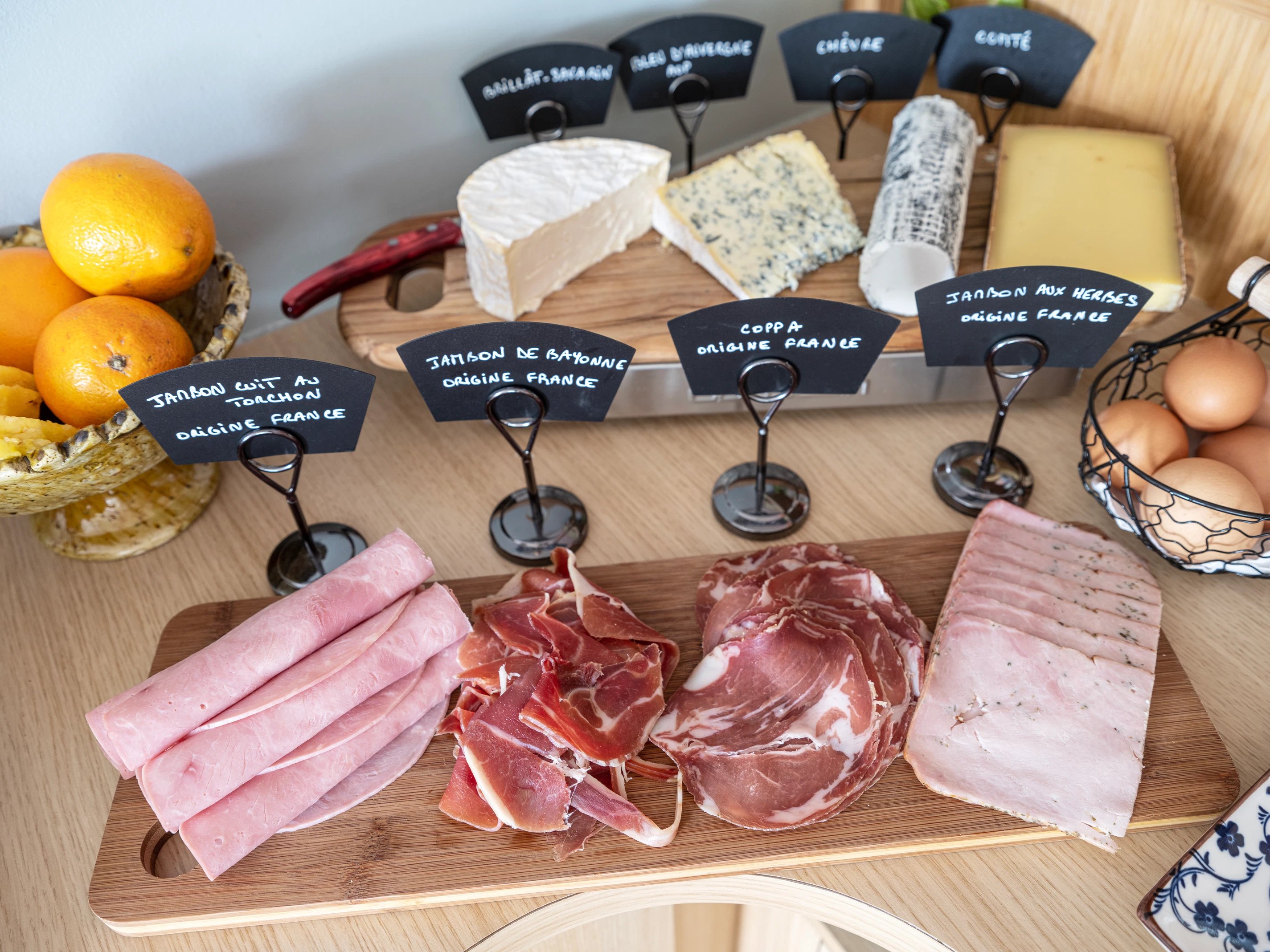 Homemade jams, freshly squeezed oranges, bread and pastries baked on site, as well as charcuterie and cheeses from the best regions of France... all quality products that will delight your taste buds!